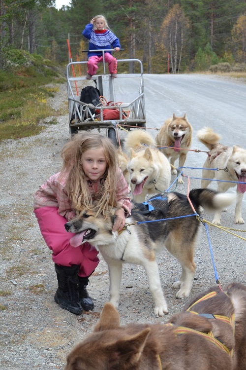 Normalt er mine valper og unghunder temmelig aktive i oppveksten. De leker, løper og herjer i skogsterrenget rundt huset fra de er gamle nok til å kunne gå. De lærer å håndtere utfordringer i terrenget etter hvert som de vokser og utvikler seg. Valper som er født på ettersommeren eller tidlig på høsten vokser også opp i takt med snøfall og sledeføre, og får løpe løse sammen med spannet fra de er rundt 4 måneder. Korte turer til å begynne med, så gradvis lengre etter hvert som de vokser og får bedre form. Når de da er rund 6 måneder løper de løse i starten av turen, for så å bli koblet inn etter en stund når de voksne har løpt av seg litt.