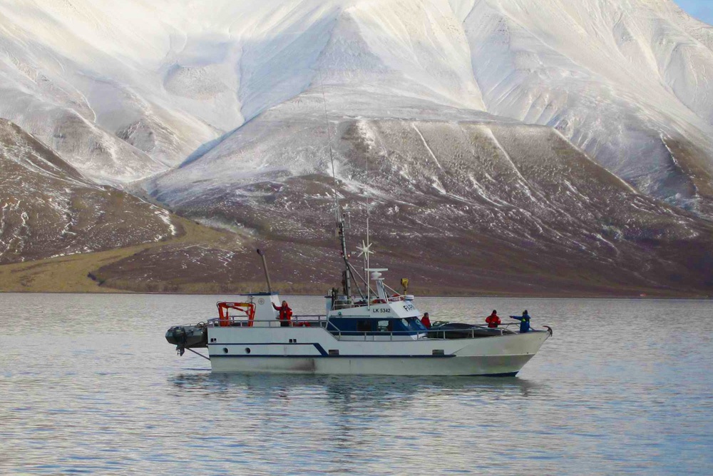 Ved midnatt forlater vi Longyearbyen om bord i MS Farm. Seilingstid er beregnet til omkring fire timer, og vi ankommer Ekmanfjorden omkring daggry. Vi gleder oss som unger og har kjempeforventninger til hva turen vil bringe av opplevelser. Samtidig har vi også en klump i magen av spenning og usikkerhet. Vi grugleder oss, som ungene sier.